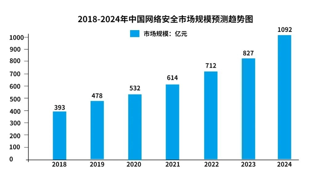 當前,網絡安全戰(zhàn)略已成為各國競爭與發(fā)展戰(zhàn)略的重要一環(huán),我國網絡安全政策環(huán)境也在持續(xù)優(yōu)化,加上企業(yè)和個人數字化需求不斷攀升,我國網絡安全市場持續(xù)擴大。根據中國網絡安全產業(yè)聯盟數據,2022年我國網絡安全市場規(guī)模約712億元,預計未來增速仍將保持在15%以上,到2024年市場規(guī)模將達到1092億元。